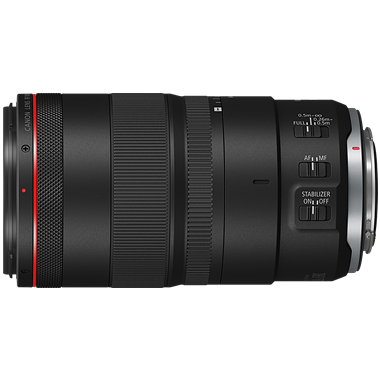 Ống kính RF 100mm F2.8L Macro IS USM là ống kính macro đầu tiên dành cho hệ máy mirrorless full-frame của Canon. Đây là một ống kính tele tầm trung với khoảng cách lấy nét tối thiểu 26cm và độ phóng đại tối đa 1.4x. Hệ thống chống rung quang học (IS) giúp giảm rung đến 5 stop khi sử dụng độc lập và lên đến 8 stop khi kết hợp với thân máy có chống rung, như EOS R5. Khi chụp cận cảnh, chế độ chống rung lai (Hybrid IS) được kích hoạt, giúp bù rung theo cả góc xoay và dịch chuyển ngang/dọc của máy ảnh.